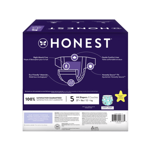The Honest Company Overnight Baby Diapers, Sleepy Sheep, Size 5, 44 ct